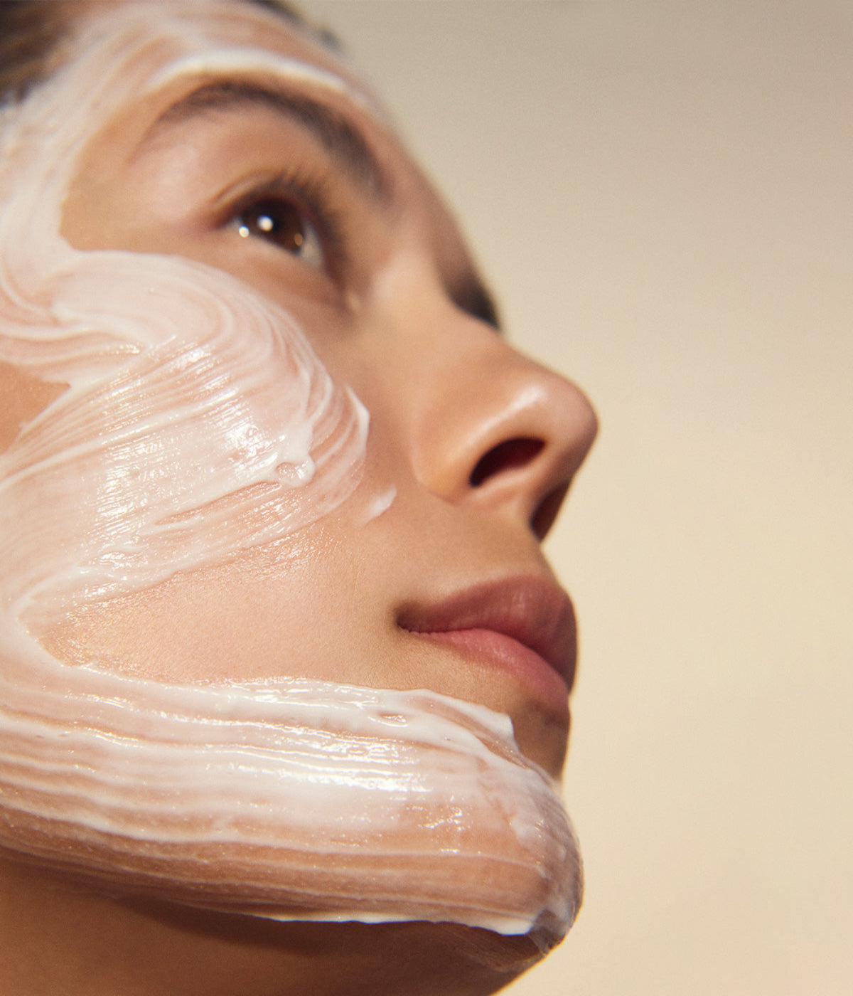 Use upward motions along the cheeks, jawline, and neck to promote firmness and supple bounce.